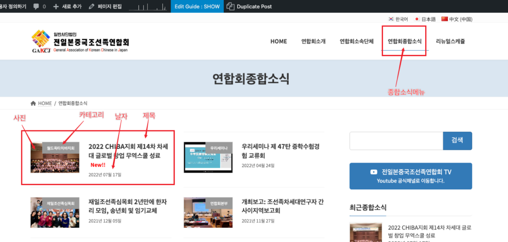 그리고 해당 단체의 페이지에 들어가 소식리스트에 나오는지도 확인해봅니다.