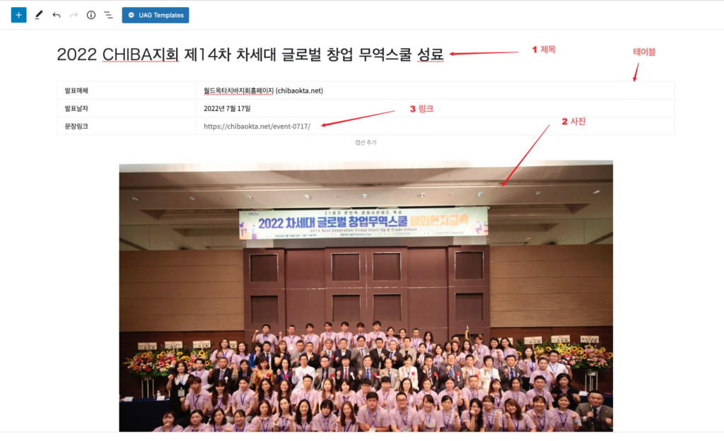 그리고 가져온 내용으로 새로운 글쓰기 페이지에 아래 내용을 적어줍니다.