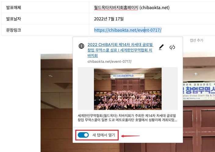 문장공개후 "연합회종합소식"에 발표한 글이 보여지는지 확인합니다.