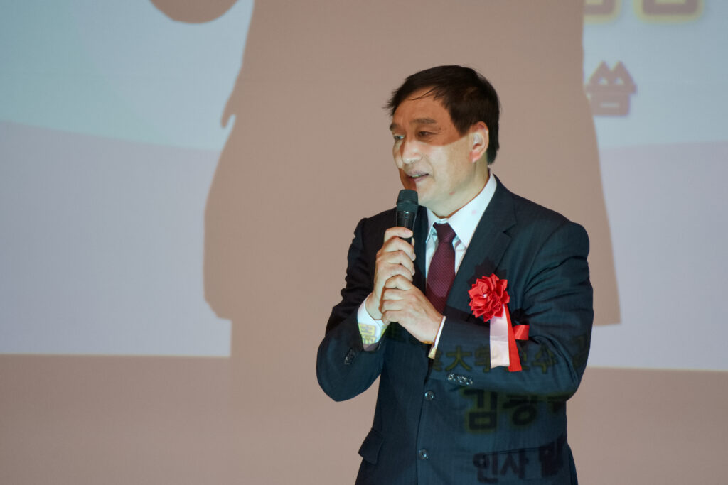 도쿄샘물학교 교가를 작사・작곡해주신 최영철회장님은 인사말에서 입학식을 맞아 참석한 학부모와 교직원들에게 감사의 뜻을 전하며, 자녀들의 언어와 문화, 정체성을 지키기 위한 노력에 깊은 존경을 표했다. 또한 교사들의 헌신에 감사하며, 아이들이 뿌리를 잊지 않고 성장할 수 있도록 학교와 가정이 함께 힘을 모아야 한다고 강조했다.
